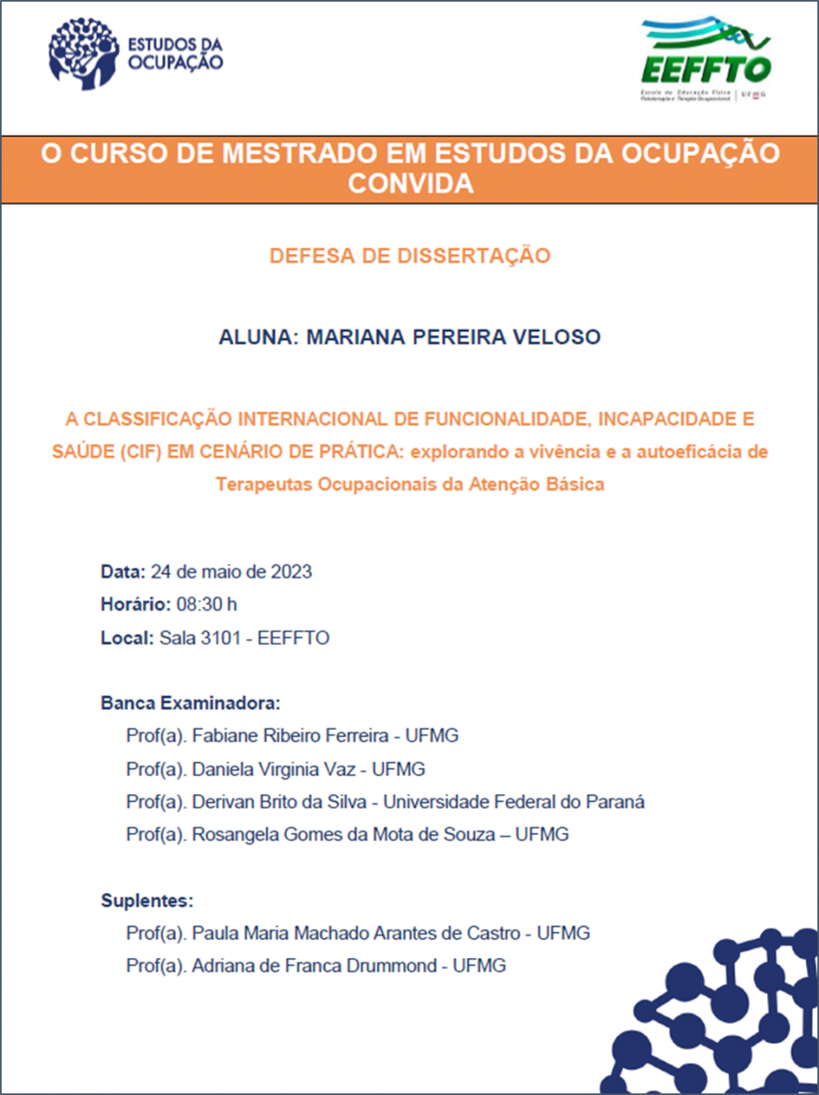 A classificação internacional de funcionalidade, incapacidade e saúde (CIF) em cenário de prática: explorando a vivência e a autoeficácia de terapeutas ocupacionais da atenção básica | EEFFTO - UFMG