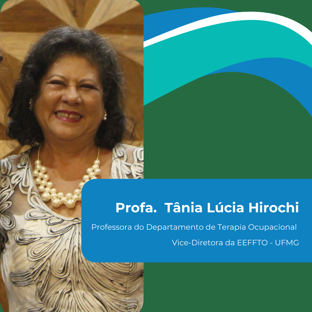 Vice-Diretora da Escola de Educação Física, Fisioterapia e Terapia Ocupacional (EEFFTO) da UFMG desde 2020, Tânia Lúcia Hirochi é graduada em Terapia Ocupacional pela Pontifícia Universidade Católica de Campinas. Sua atuação profissional desenvolveu-se majoritariamente no estado de São Paulo. Em Atibaia, trabalhou na área de saúde mental, na Clínica Maxwell Jones. Logo em seguida, foi para São Paulo, onde atuou com neuropediatria na Associação de Assistência à Criança Deficiente, a AACD. Já no Hospital das Clínicas da USP, trabalhou com reabilitação profissional na divisão profissional do Vergueiro. Felizmente, em 1987 a Tânia Lúcia passou a integrar o Departamento de Terapia Ocupacional da EEFFTO.