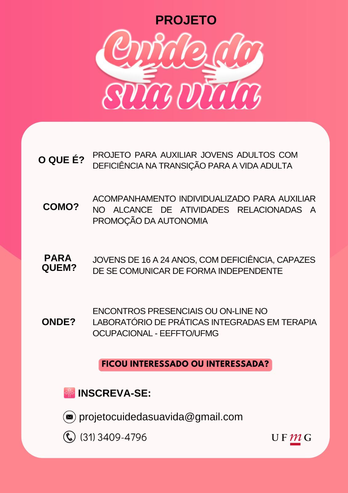 A transição da adolescência para a vida adulta não é fácil e pode ser ainda mais desafiadora para jovens com deficiência. Diante da carência de serviços que abordem as necessidades específicas desses jovens, o projeto de extensão “Cuide da sua vida” foi desenvolvido para auxiliar nas demandas relacionadas à promoção da autonomia e independência dessa população.