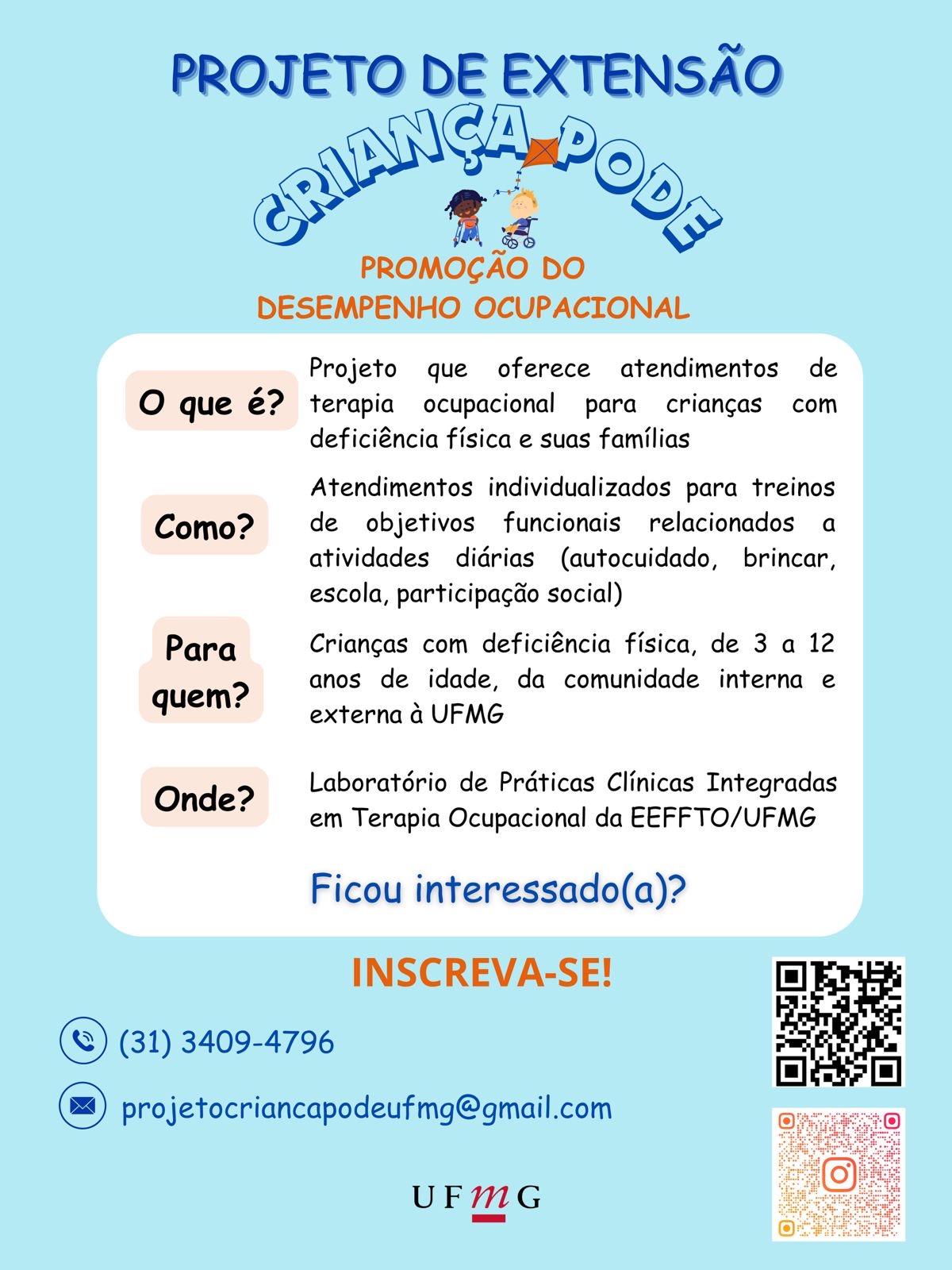 Contato: projetocriacapode@gmail.com | Instagram: @criancapode.ufmg